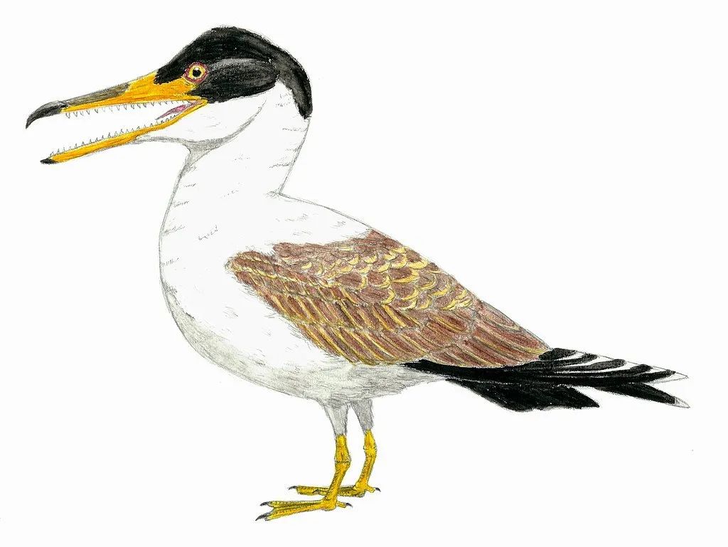 鱼鸟复原图,可见到口中还有牙齿,是原始的特征 | El fosilmaníaco / Wikimedia Commons