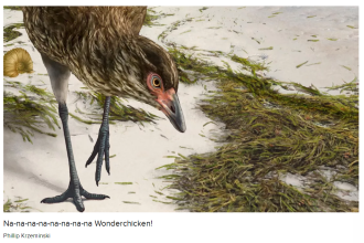 “原以为它们的鸟肢骨头保存得不好,直到用CT扫描一些岩石后,我们才发现这种新化石有多壮观。”剑桥大学的古生物学家丹尼尔·菲尔德(Daniel Field)对此表示,“这简直震惊了我们整个古生物科学事业圈,当我们意识到化石显示出与类似活鸡一样的鸟类某些特征时,自然而然地就想到了Wonderchicken这个名字。”