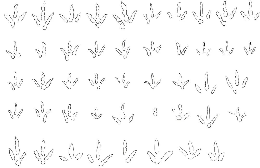 本次发现的全部46个卡岩塔足迹的素描图 |邢立达供图