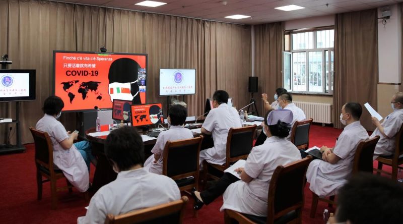 疫情面前没有旁观者,全世界人民“同身共命,同气连枝”。今年4月,哈医大一院派出的中国政府赴俄专家曾在国际抗疫中做出重要贡献。此次通过视频在线与意大利医护人员交流分享抗疫经验,旨在与意方同行一道共抗疫情、共克时艰。(受访单位供图)