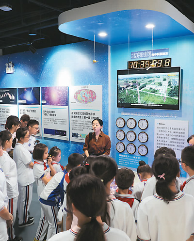 跟随李婧的脚步,笔者来到以“面向世界科技前沿”为主题的展区,映入眼帘的是这里人气最高的“科学网红”——500米口径球面射电望远镜(FAST)模型。这是世界上最大的单口径射电望远镜,比世界第二大的美国阿雷西博350米望远镜综合性能提高了约10倍。