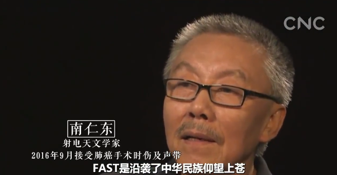 南仁东(射电天文学家):FAST是沿袭了中华民族仰望上苍,观测,斗转星移这样一个文化传统的一个延伸。