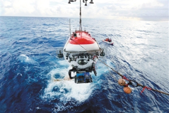 2017年6月13日,“蛟龙”号完成下潜后回到“向阳红09”船甲板。
