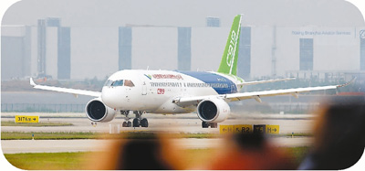 2017年5月5日,中国首款国际主流水准的干线客机C919在上海浦东国际机场首飞成功。