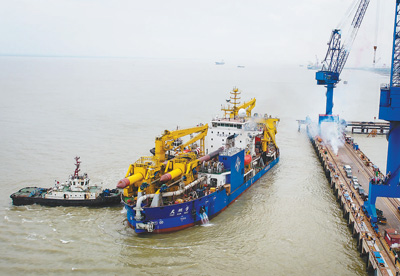 当日,由中交天津航道局投资建造,具有中国自主知识产权的亚洲最大重型自航绞吸挖泥船“天鲲号”,缓缓驶离位于江苏启东的船厂码头,正式开启为期3天的海试。“天鲲号”全船长140米,宽27.8米,最大挖深35米,设计每小时挖泥6000立方米。