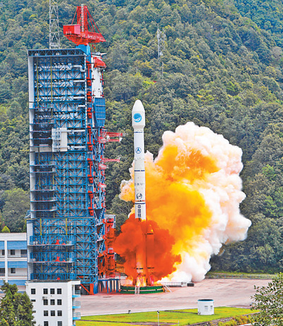 15日,北斗三号卫星发射现场。