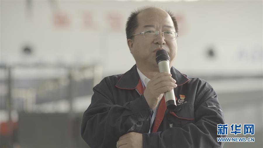 10月17日,AG600飞机总设计师黄领才介绍该机型特性(视频截图)。新华社记者 熊琦 摄