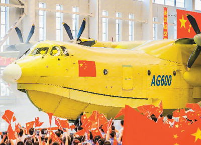 2016年7月,AG600总装下线。图为下线仪式。