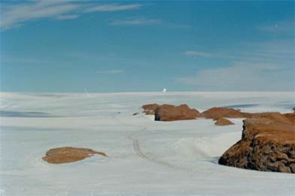 但是,飞机要从地面起飞或着陆,都必须要有适当的摩擦力。如果地面没有摩擦力,飞机不能够起飞或着陆。从队友张继民提供他在中山站附近冰盖上的照片可见,这里的确比较平坦,但缺乏摩擦力。所以,在修建南极机场时,如何把冰盖表面的摩擦力调整为适合飞机起飞或着陆的摩擦力,就成为指导修建飞机场的技术关键。比如,把冰盖的表面冰破碎到一定程度,使得表面的摩擦力恰恰符合起飞或着陆的摩擦力等等。