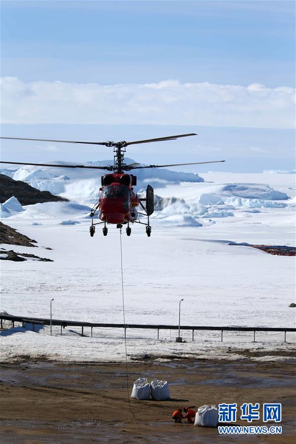 12月14日,直升机向南极中山站吊运物资。新华社记者 刘诗平 摄