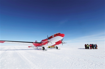 图为第35次南极考察任务期间,中国极地固定翼飞机“雪鹰601”降落南极冰盖之巅。刘诗平摄
