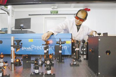 图为科考队员黄文涛在调整和优化光路(2月11日摄)。