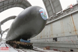俄罗斯电视节目中船坞内“喀山”号核潜艇艇艏特写