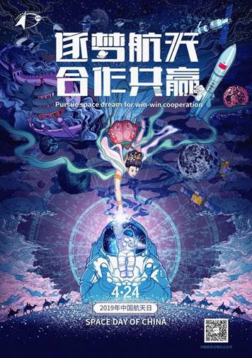 2019年中国航天日海报一经问世便惊艳众人,完美融合了中国千百年的神话和近些年的航天成果(图片来源:国家航天局)