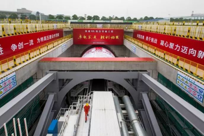 要想建成贯穿安徽、江苏、浙江上海的华东特高压交流环网,就必须跨越一段5000多米宽的长江。作为整个环网中建设难度最高的工程,连接南北特高压输电网的苏通GIL综合管廊工程无疑成为了“咽喉要道”。管廊隧道南起苏州,北至南通,总长度5468.5米,最深处距离江面74.83米,水土压力超过0.9兆帕,是目前为止国内埋深最深、水压最高的隧道。