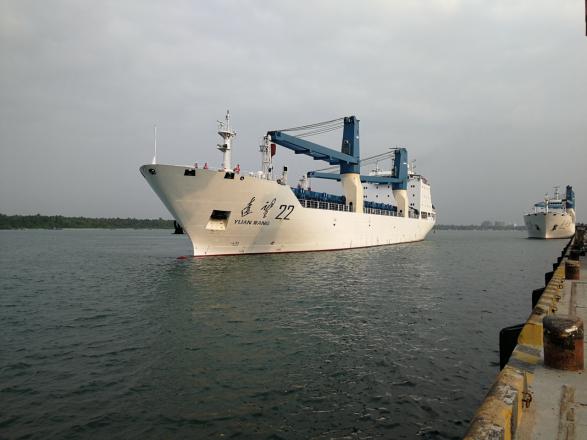 载有长征五号B火箭的远望运输船抵达海南文昌(杨柳摄)