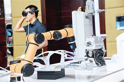 2019年7月25日,参会人员在世界工业互联网产业大会展示区体验工业互联网产业成果。新华社发