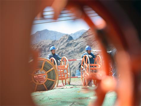 工作人员正在放导线。胡培根摄