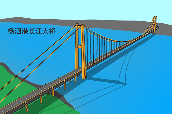 悬索桥的承重主要通过钢缆及其支承锚固系统传递给大地,因此跨越能力大,并且和其他桥型相比,跨度越大,悬索桥的优势越明显: