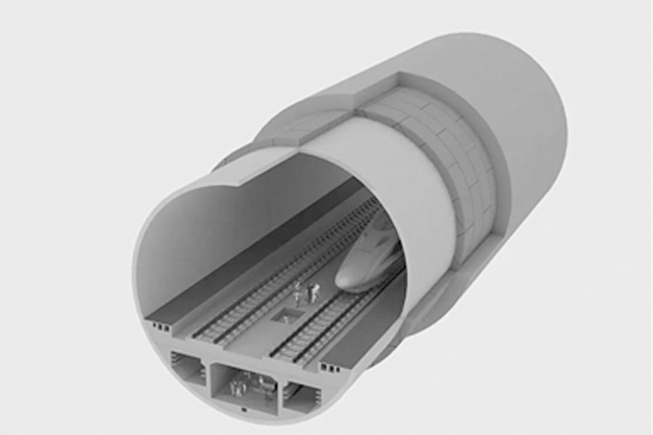 隧道设计为单洞双线,防灾检修通道利用双线轨道之间下方的空间,设置疏散与检修廊道,这也是铁路建设中首次采用的设计方案。