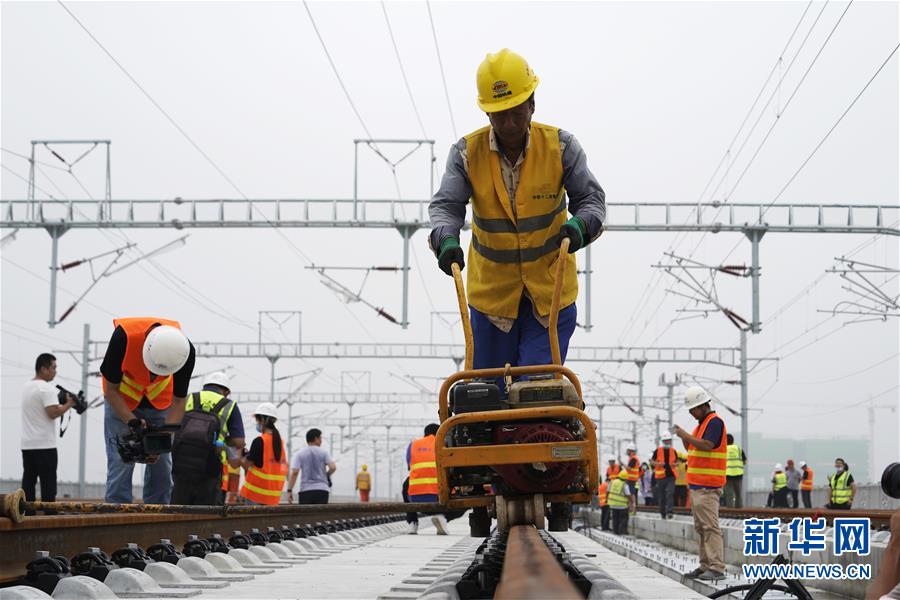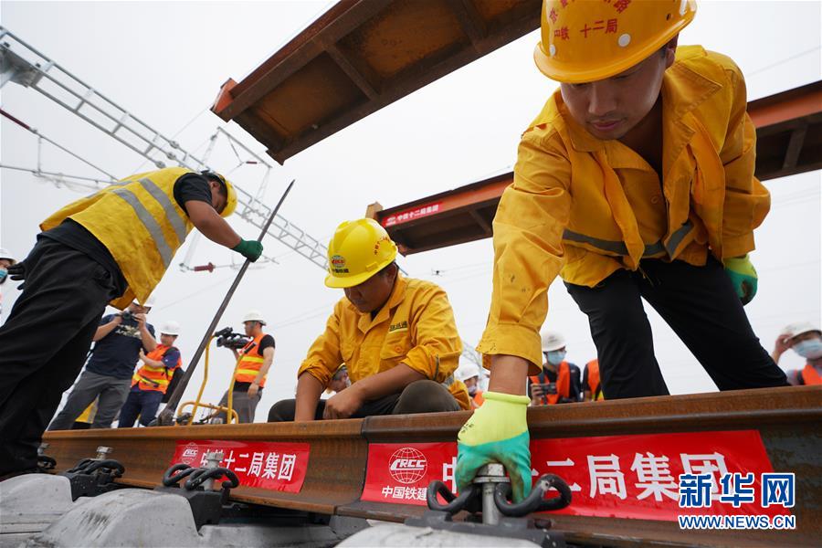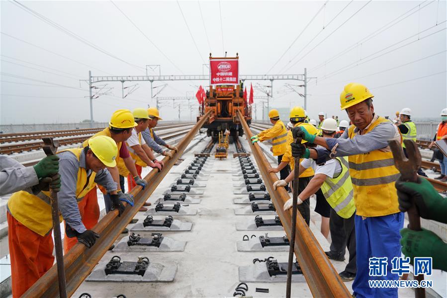 这是8月17日拍摄的铺轨现场。新华社记者 牟宇 摄