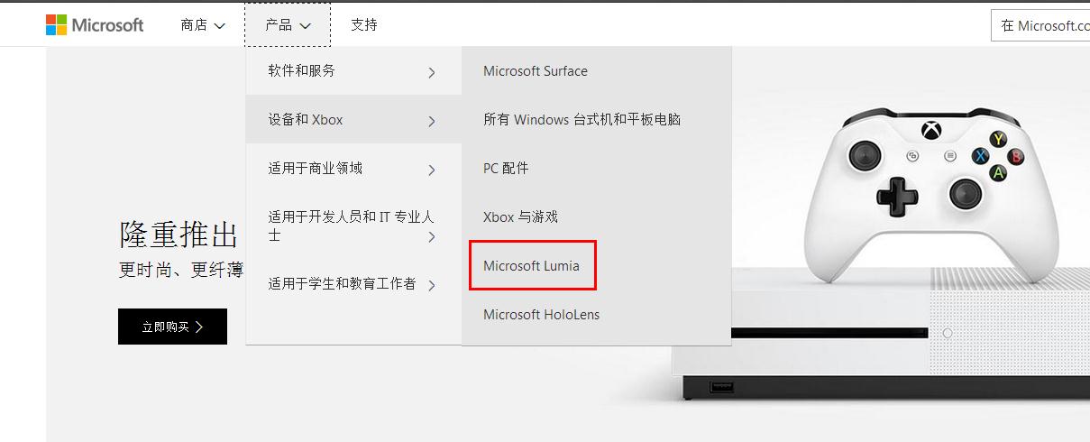 更具体来说,微软官方网站的“产品”这一类别中,通过“设备和 Xbox”我们还是能找到“Microsoft Lumia”手机官方介绍的入口,此前一直是 Lumia 950、950 XL 和 Lumia 650 的中文详细介绍页面。不过,从今天开始,这一入口点击已经直接跳转到英文官网去了。很多人预计,英文页面应该也不会保留太久。