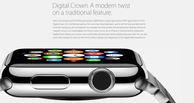 苹果2014年新公布的Apple Watch,借鉴了iPhone的Home按键设计。Apple Watch包含一个被称作“数字表冠”(Digital Crown)的多功能表冠——与传统手表的模拟表冠相似,但大量借鉴了iPhone设计。就像Home按键一样,单击退出当前的应用,按住激活Siri,连按两下返回最近运行的应用,与多任务功能相似。