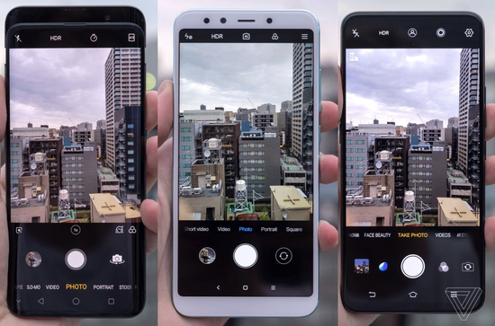 至于相机应用程序,绝大多数人的相似之处真是令人难以置信,无论是彼此之间还是与苹果相比。从剽窃的准确性和特殊性来看,来自iOS 7的相机应用程序可以声称自己是过去十年中最具影响力的软件设计之一。只需看看上面的图片。小米的相机界面仅仅更改了字体和颜色。除此之外,只有华为成功创造了一款真正全新的相机应用程序设计,这种设计恰好非常好。