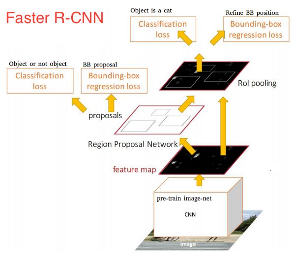 一旦我们获得了我们的候选区域,我们就会直接将它们提供给基本上是快速R-CNN的内容。我们添加了一个池化层,一些全连接层,最后是一个softmax分类层和边界框回归器。