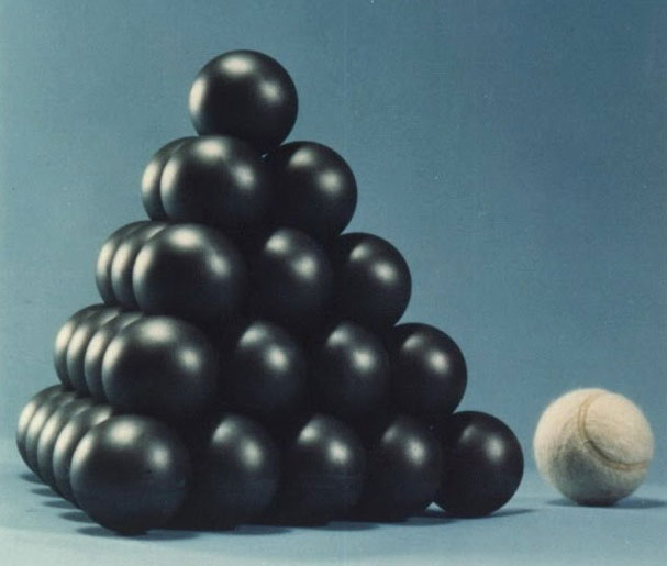 图为高温气冷堆的球形燃料元件,每一个都如网球般大小。