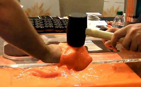 于是,1999年帕尔默启动了相关的研究。功夫不负有心人,在2005年,帕尔默带领他的研究小组找到了这种材料,并以发明它的实验室命名——D3O。这种材料减振性能高,可用于制造防碰撞保护产品。该材料自问世以来就只有亮橙色这一种颜色,正如我们在文章开头看到的,其外形很像儿童喜爱玩的弹性橡皮泥。