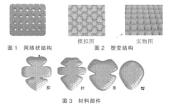 一种是网格状的薄片结构(见下图1), 具有较好的舒适性和透气性,可用于需要较高的可弯曲性和中等程度冲击保护作用的场合,如脚部、身体和头部;另一种是塑变结构 (见下图2),用于各个重点保护部位,如膝、肘、肩和臀等部位(见下图3)。结合计算机技术,可根据人体不同部位的自然曲线,将各个部分设计为具有最大的接触面积,从而提供更好的保护作用。