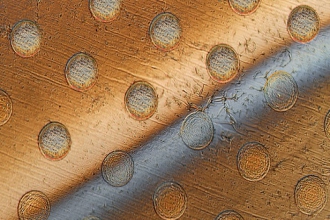 首先2D电路元件被蚀刻在一个的聚合物胶板中,将聚合物电路材料层固定在一页石墨烯2D材料上,通过微阵列打印机对另一张石墨烯材料基底射孔, 这样包含电子电路的材料的会形成三层的圆点,而基底只有一层石墨烯,随后科研人员对这一基底材料进行可控压力的分裂,可用部分的圆点就会完整保留,而基底材料就会分裂。