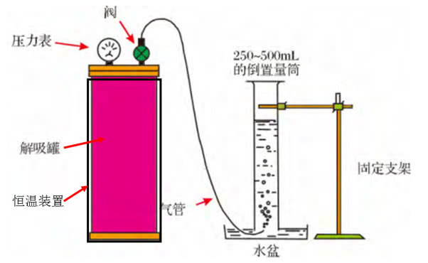 解吸法测试含气量装置最早应用于煤层气的解吸过程研究,主要是针对煤矿矿井安全。此后,由于解吸法可直接获取样品的储存气量,逐渐被认为是煤层气含量评价的最可靠方法。由于页岩气和煤层气在赋存状态和物理化学特性上有一定相似性,因此页岩含气量的直接测定法也延用了煤层气含量直接测定法的基本思路。