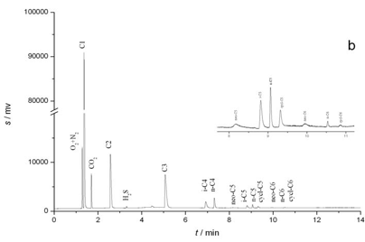 对于页岩气组分定性定量的分析主要由气相色谱仪测定完成。气相色谱仪的高效、便捷、分离度高等特点不仅帮助推进了页岩气组分分析方面的研究速度,也提升了页岩气组分分析的精密度。