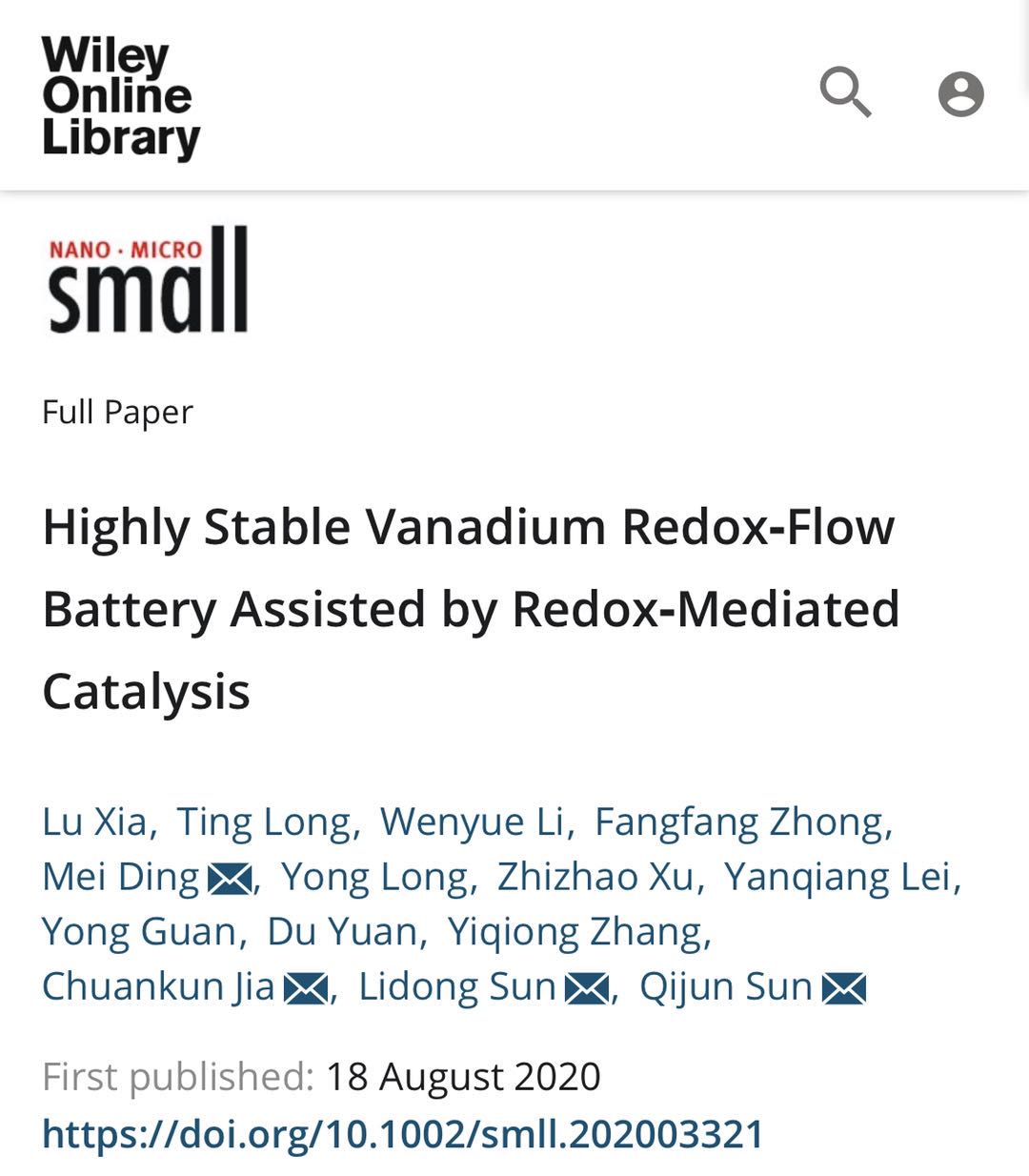 为储能电池“加料” 我科学家研制出新型钒液流电池电极材料新华网 2020-08-23 作者:俞慧友 |