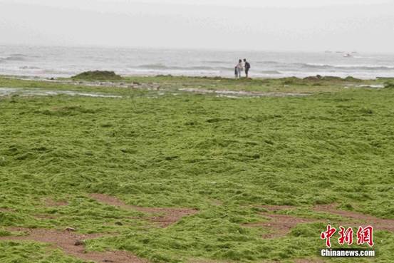 好了,不逗大家玩了,这些在漂浮在海面上游荡的绿色怪物是规模极大的浒苔,注意念(hu),念不对的同学《水浒传》白听白看了。