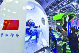 观展者在使用VR设备了解航空航天知识。新华社记者 彭昭之摄