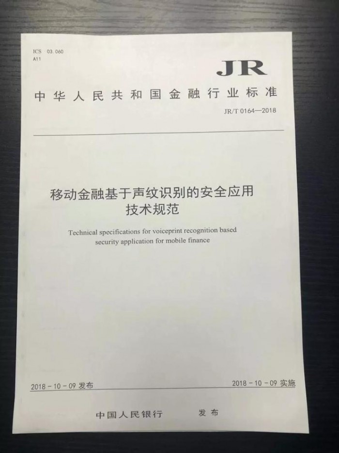 据了解,该标准由中国建设银行、清华大学、北京得意音通技术有限责任公司发起,历时3年研证,由央行批准颁布。标准修订期间,在央行科技司主导下,发起单位联合工、农、中、交等国内各大银行,国家级测评机构及第三方支付平台等共同对标准报批稿进行了进一步完善。这是央行颁布的我国金融行业第一个生物识别技术标准。