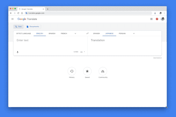 ● 新外观与谷歌的其它产品更加一致,更新的标签和排版使其更易于导航。例如,您始终可以对上传文档进行翻译,但现在该功能更易于被找到。