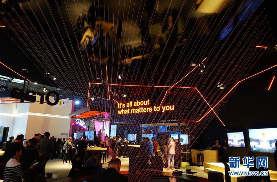 2月28日,在西班牙巴塞罗那,人们在世界移动通信大会上参观电信企业Orange的展区。2019年世界移动通信大会28日在西班牙巴塞罗那落下帷幕。本届大会吸引了近11万名参观者和2400多家企业,而5G(第五代移动通信技术)是出现频率最高的“关键词”。新华社记者郭求达摄