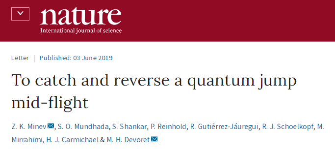 [1] Z. K. Minev, et. al., To catch and reverse a quantum jump mid-flight, Nature 570, 200–204 (2019)