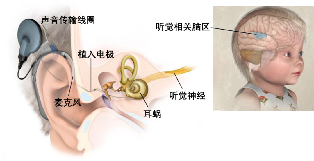 人工耳蜗是目前最成功的“脑机接口”,声音被设备处理成电刺激传给听觉神经 | 作者整理