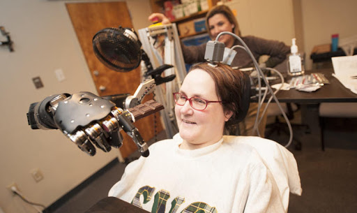 脊髓损伤患者控制机械手臂吃巧克力 | csee.umbc.edu