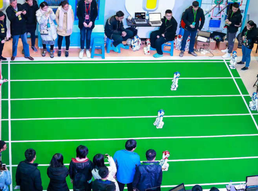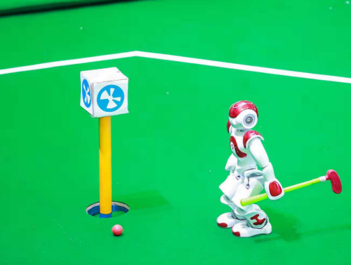 其中,软银NAO高尔夫是机器人界的经典比赛项目,比赛过程必须由机器人自主完成辨识球洞位置、球的位置以及球场整体环境,来实现自身定位和球洞与球的定位,同时机器人需要根据球的位置调整自身站立位置,并自动调整挥杆击球动作,进而实现击球进洞。对学生来说,如何透过程序设计对软银NAO进行动作精细控制、物体识别、路径规划和定位导航、甚至声音识别都是很高的技术挑战。此次大赛中,南京邮电大学通达学院高达Golf二队在15分3秒时间内,挥杆6次即完成赛程中三种难度的进球获得冠军。