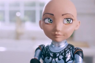 官方介绍,小索菲亚有着和索菲亚同样可爱的个性,俏皮好奇,可以生成各种各样的人类面部表情,而且能响应命令,积极对话。
