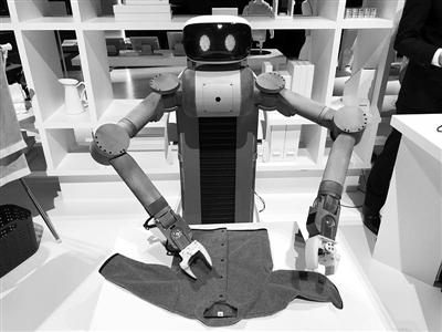 图为这台名叫“ugo”的机器人正在叠衣服,预计其可于2020年夏季提供服务。