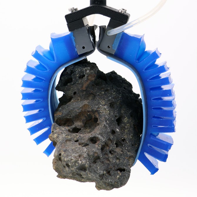 通过开发控制算法,机器人可以沿着抓手的整个长度分配适量的力,团队最终可以使用一个抓取器抓取各种不同位置的重物,重量不超过45磅(20千克)。这包括粗糙的多孔物体,如火山岩、圆柱形管道等更平滑的物体,以及咖啡杯和西红柿等常见物品。