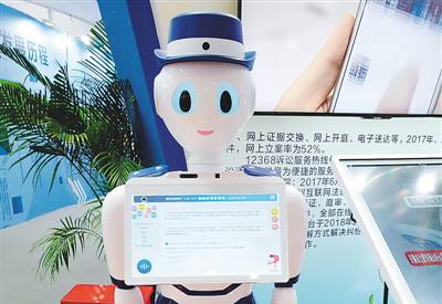 数字中国建设峰会上展示的安徽省合肥市蜀山区人民法院智能导诉机器人。