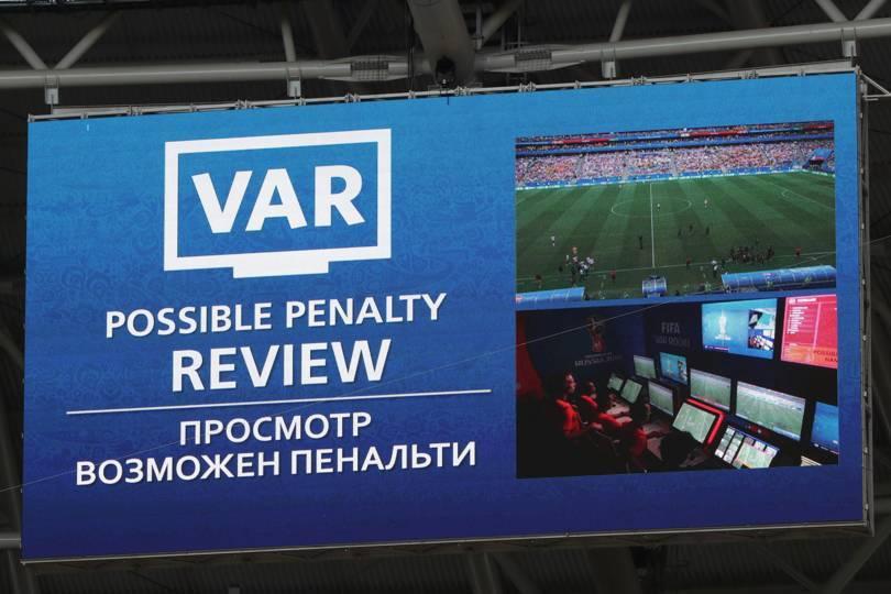 俄罗斯世界杯是第一项全面使用VAR的赛事。该系统是这么运作的:五名裁判——主裁判员、两名边裁、第四官员和视频助理裁判——通过耳机保持沟通。在遇到问题时,要么VAR做出建议,要么裁判主动询问VAR的意见。VAR还可以提醒主裁判漏判的情况,在这种情况下,裁判可以直接接受VAR的意见,也可以到场边查看回放。VAR本身位于莫斯科的一个视频操作室。VAR由1个视频助理裁判和3个助理组成——全都是国际足联的顶级裁判。这些裁判员身着全套装备,坐在一间配有10个屏幕的视频操作室,屏幕上显示着来自转播摄像机的多个摄像机镜头和体育场的两个越位摄像机带来的画面。这些触摸屏可让裁判进行缩放,即时选择不同的角度。此外,为了消除判罚过程对于球员和球员往往不明确的批评,足球场内的巨大屏幕上会显示回放和图像来解释判罚。